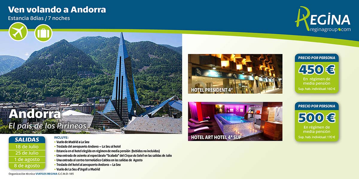 - Stay 8 days / 7 nights in Andorra (departure from Madrid via Andorra-La Seu airport)