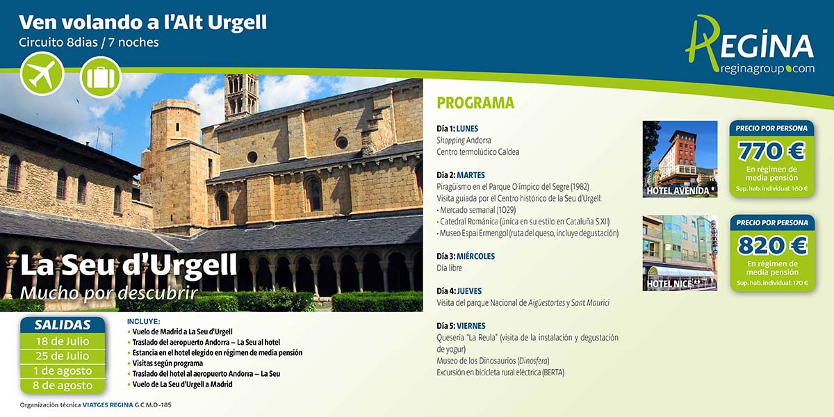 - Stay 8 days / 7 nights in La Seu d'Urgell (departure from Madrid via Airport Andorra-La Seu)