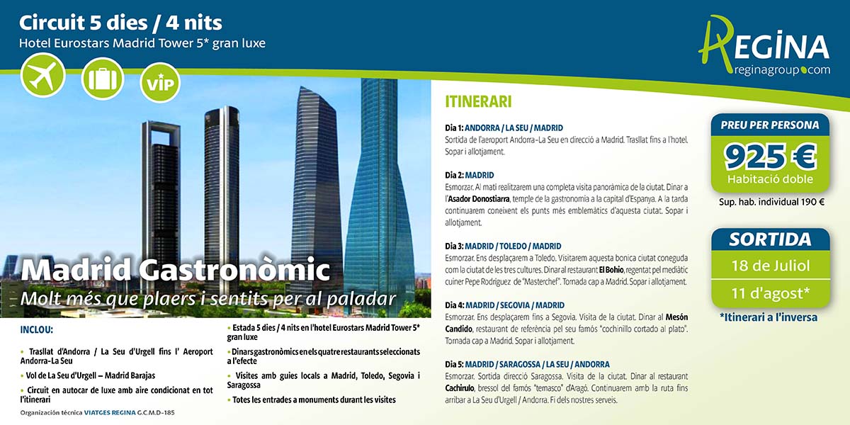 - Circuit 5 days / 4 nights in Madrid (departure from Andorra via Andorra-La Seu airport)