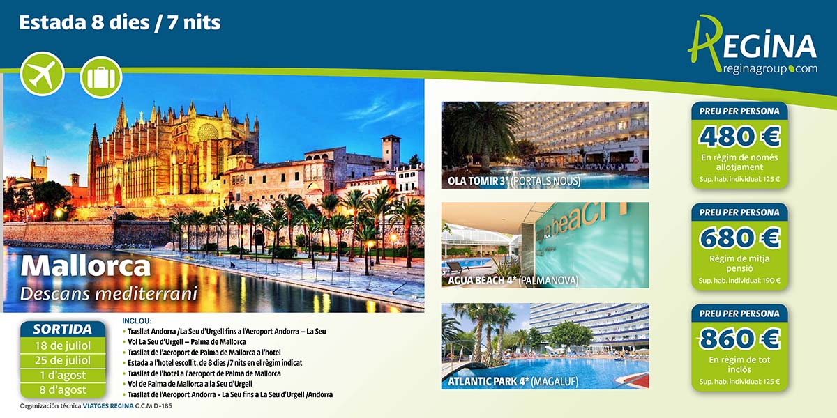 - Stay 8 days / 7 nights in Majorca (departure from Andorra via Andorra-La Seu airport)